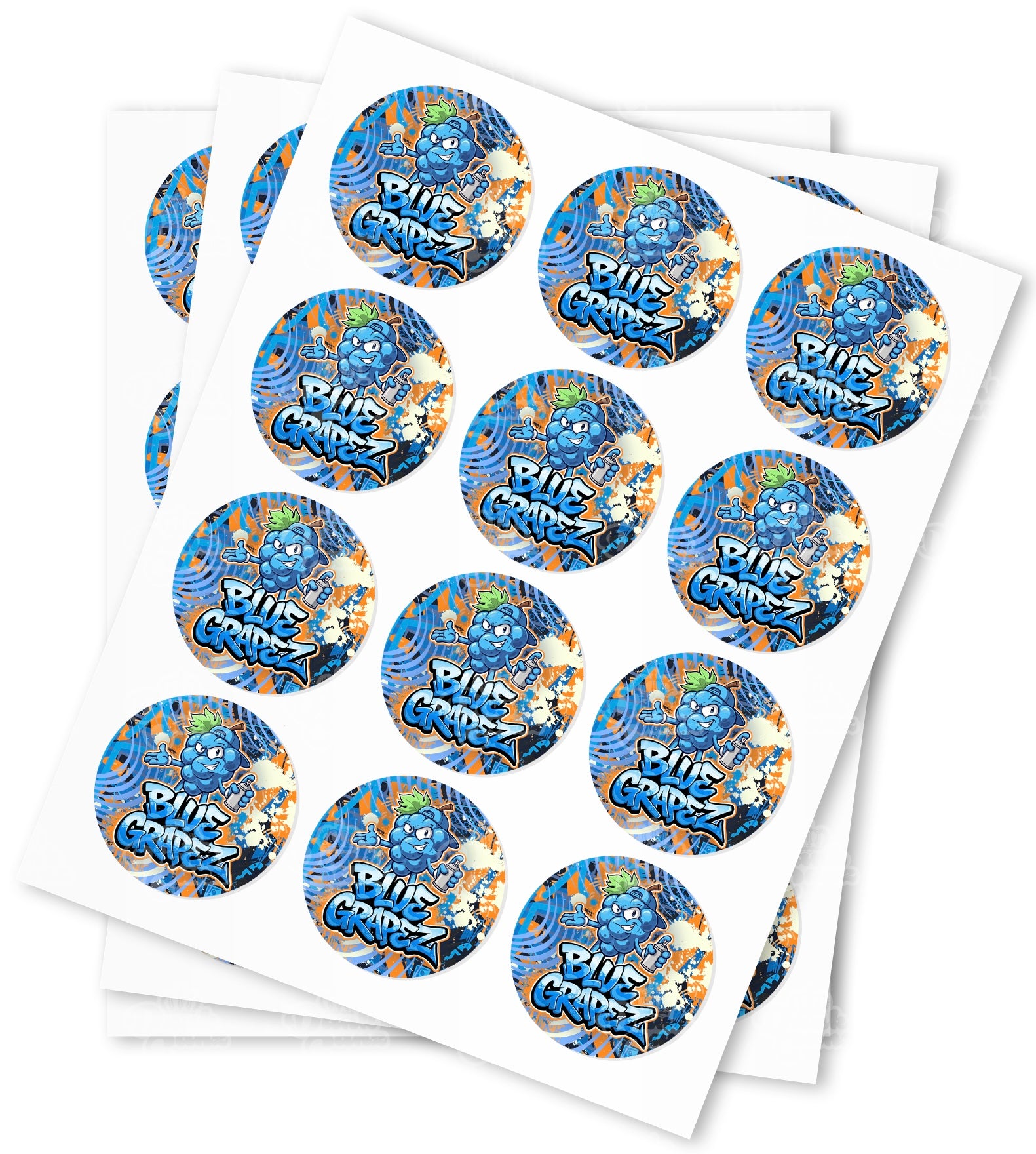 Our stickers are available in sizes 5cm, 7cm & 10cm and come on unlaminated sheets, printed using top quality gloss vinyl.