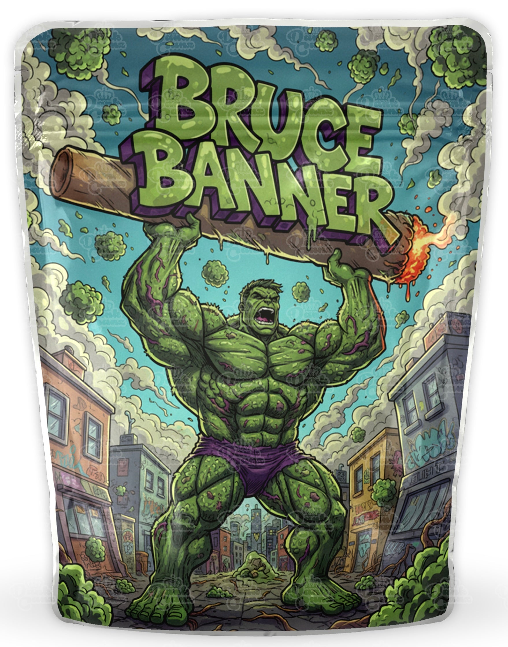 Need Bruce Banner packaging quick? Pre designed stand up Mylar Pouches are a perfect packaging solution and come pre-labelled (sticker applied to bag). With hundreds of designs to choose from & fast delivery our cali packz are one of our best sellers!