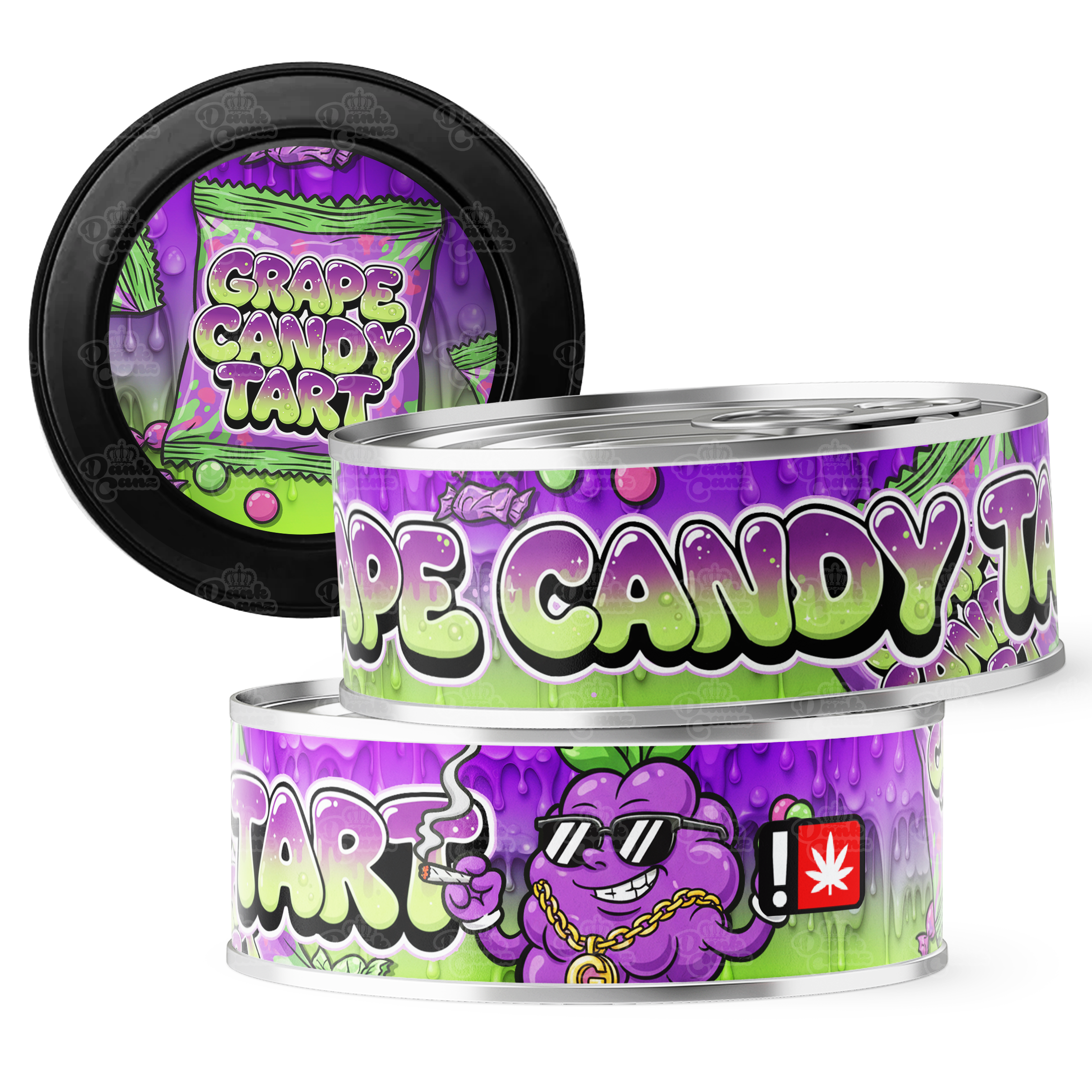 Need Grape Candy Tart packaging quick? Pre designed seal at home tins are a perfect packaging solution and come pre-labelled (sticker applied to tin & cap). No machines necessary simply insert your dry products and pop the bottom on the pressitin. Once the bottom is fitted the only way into our tins is using the pull ring at the top. Complete with caps to keep your product fresh even after opening & with hundreds of designs to choose from & fast delivery our cali tins are one of our best sellers!