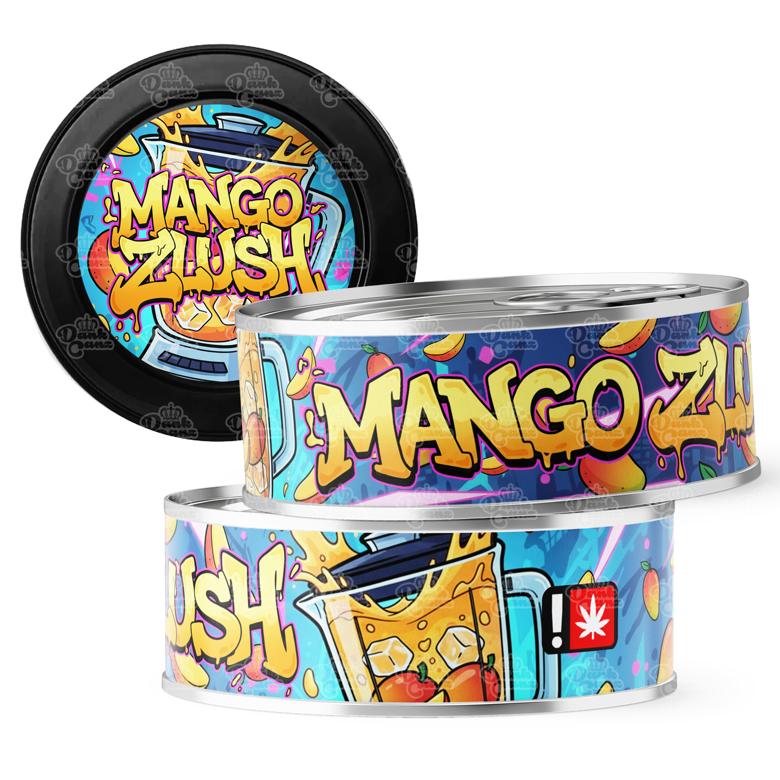 Need Mango Zlush packaging quick? Pre designed seal at home tins are a perfect packaging solution and come pre-labelled (sticker applied to tin & cap). No machines necessary simply insert your dry products and pop the bottom on the pressitin. Once the bottom is fitted the only way into our tins is using the pull ring at the top. Complete with caps to keep your product fresh even after opening & with hundreds of designs to choose from & fast delivery our cali tins are one of our best sellers!