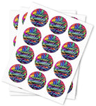 Our stickers are available in sizes 5cm, 7cm & 10cm and come on unlaminated sheets, printed using top quality gloss vinyl.