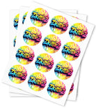 Our stickers are available in sizes 5cm, 7cm & 10cm and come on unlaminated sheets, printed using top quality gloss vinyl.