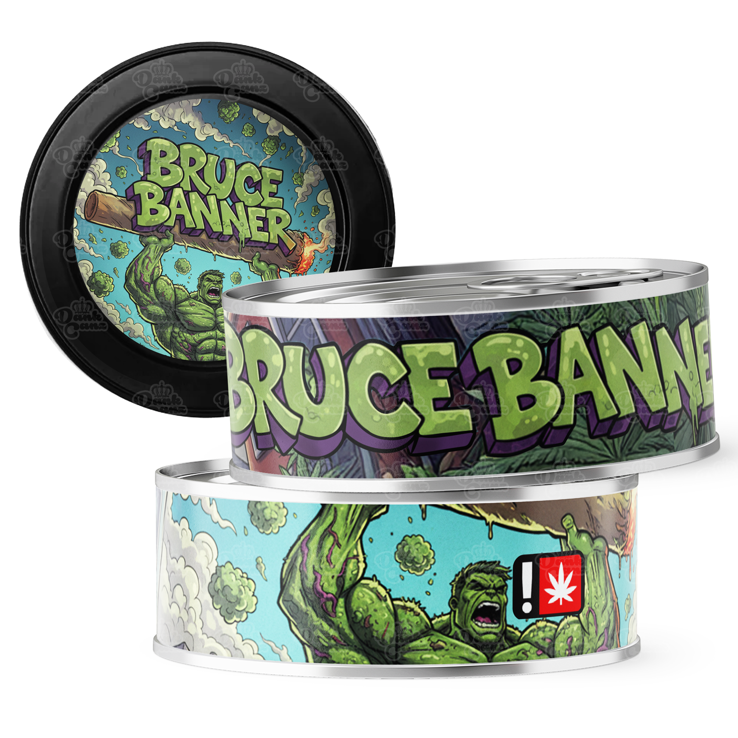 Need Bruce Banner packaging quick? Pre designed seal at home tins are a perfect packaging solution and come pre-labelled (sticker applied to tin & cap). No machines necessary simply insert your dry products and pop the bottom on the pressitin. Once the bottom is fitted the only way into our tins is using the pull ring at the top. Complete with caps to keep your product fresh even after opening & with hundreds of designs to choose from & fast delivery our cali tins are one of our best sellers!
