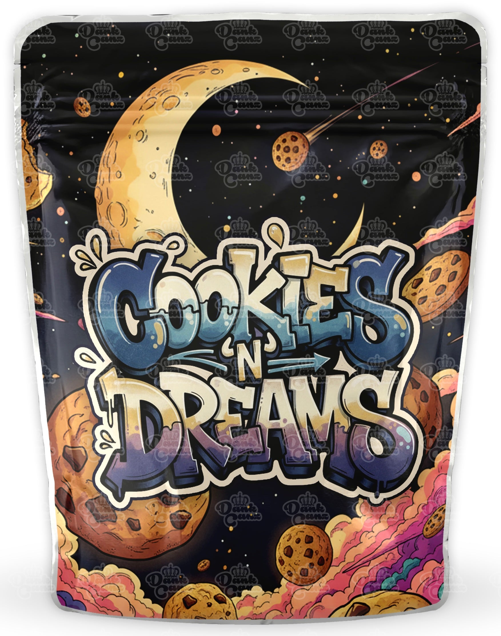 Need Cookies & Dreams packaging quick? Pre designed stand up Mylar Pouches are a perfect packaging solution and come pre-labelled (sticker applied to bag). With hundreds of designs to choose from & fast delivery our cali packz are one of our best sellers!