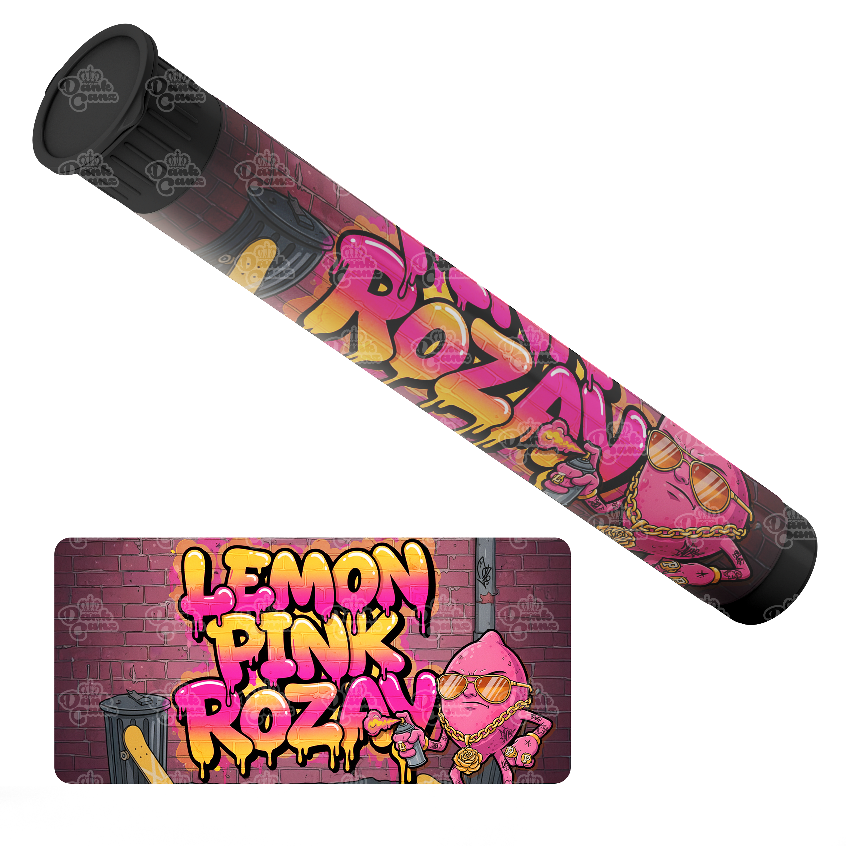 Need Lemon Pink Rozay packaging quick? Pre designed Pre Roll Tubes are a perfect packaging solution and come pre-labelled (sticker applied to tube). With hundreds of designs to choose from & fast delivery our 115mm Pre roll tubes are one of our best sellers!