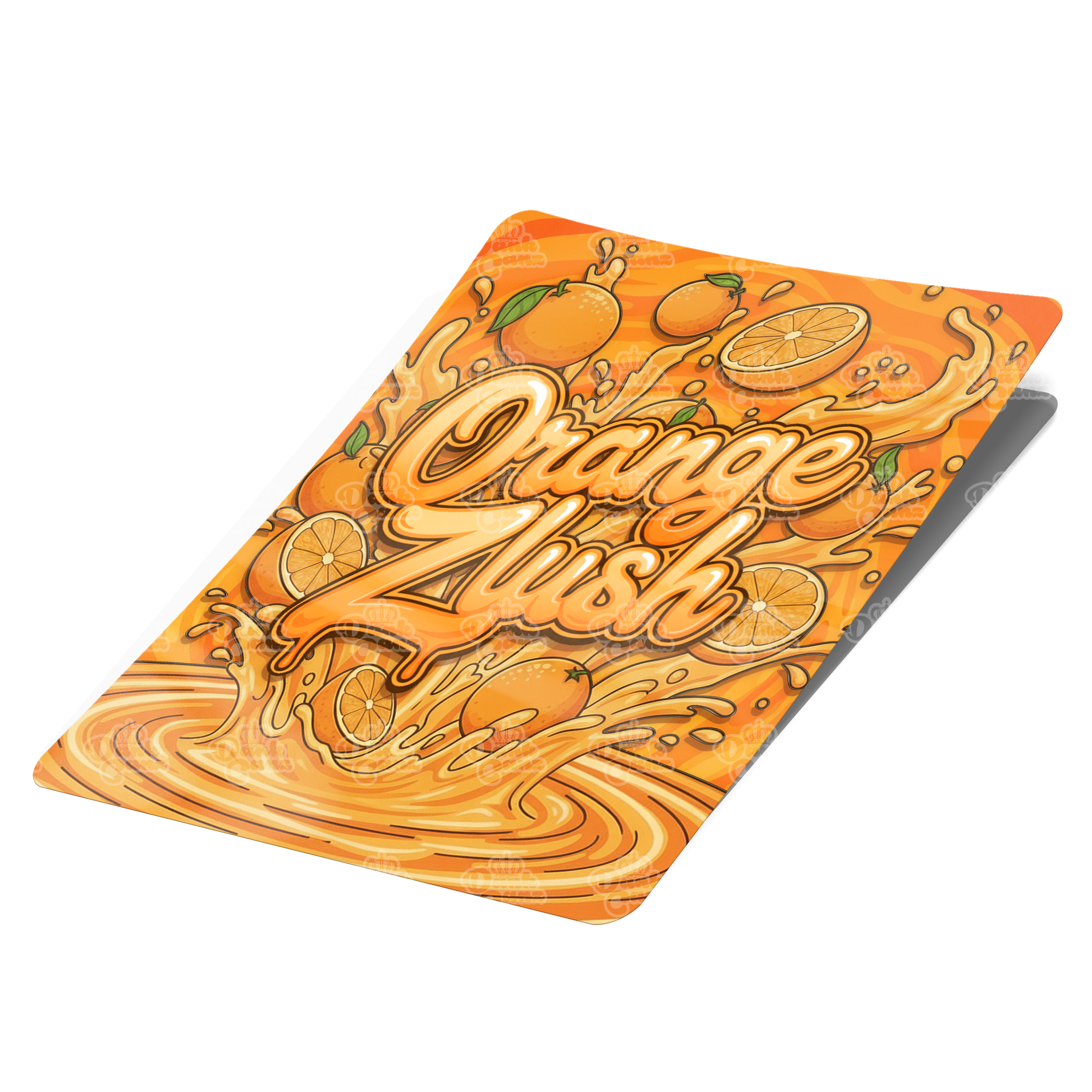Our Orange Zlush Mylar bag labels are printed using high quality gloss vinyl with a gloss laminate overlay. Our bag labels are scratch and water resistant and unlike other providers our ink has a 10+ year life. High quality laminated labels means once applied you don't need to worry about the edges curling or the label coming unattached. Please note these labels are cut to fit our Mylar bags - please see our table below for specifications. If you require a size for alternative bags please contact us for a quote.