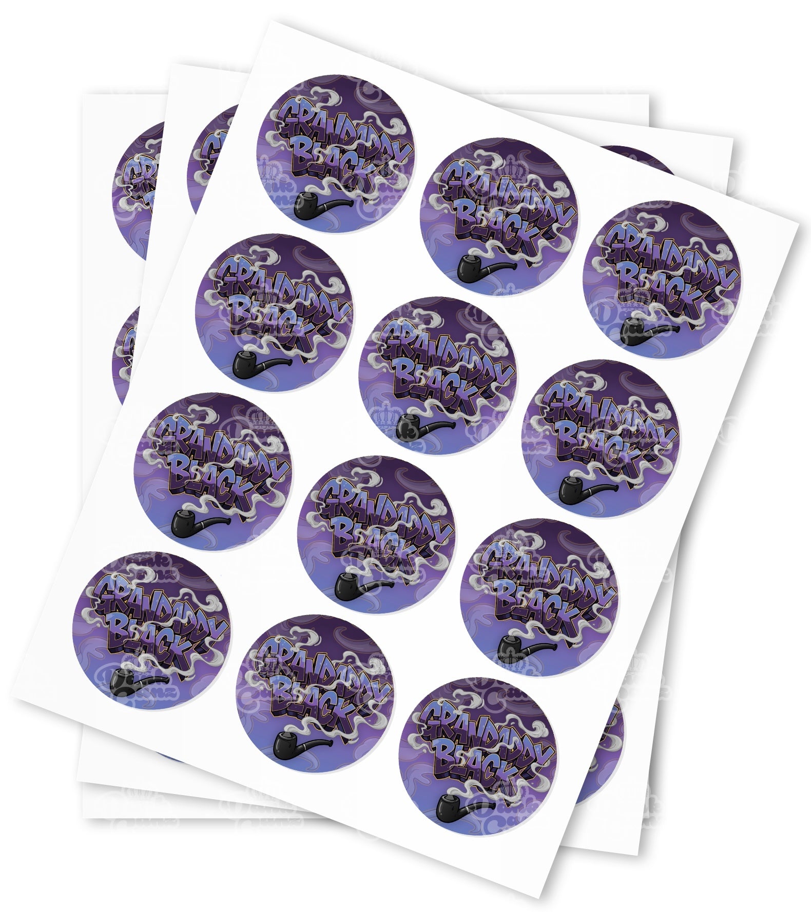 High quality water proof Granddaddy Black gloss stickers supplied on sheets. Available in quantities of 50,100 & 1000.