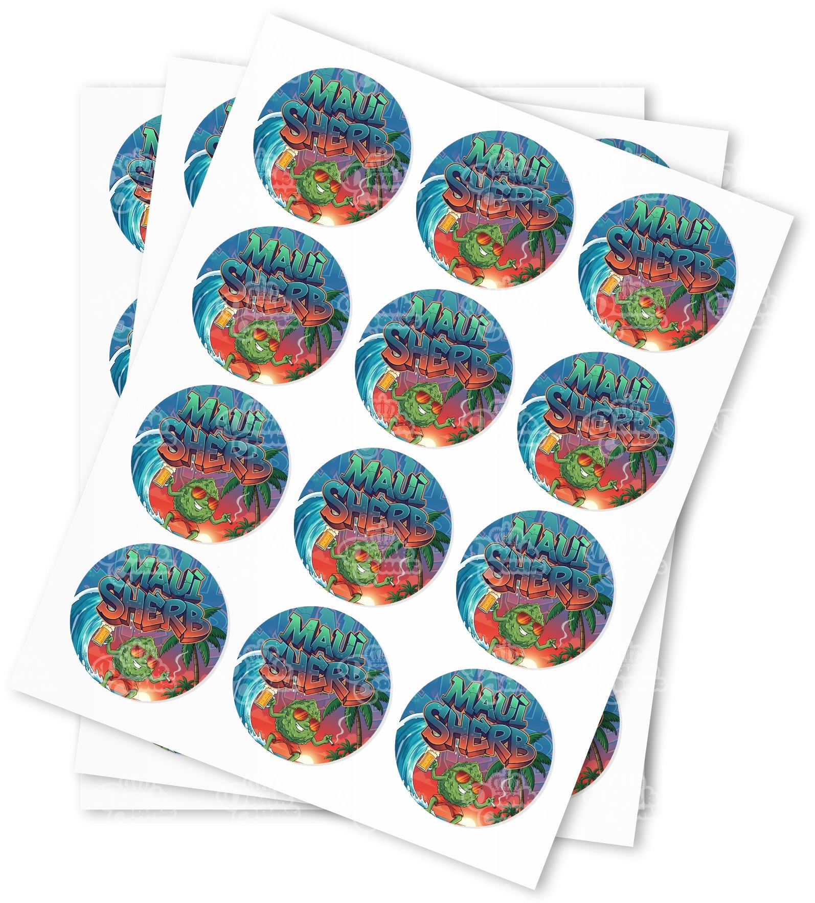 High quality water proof Maui Sherb gloss stickers supplied on sheets. Available in quantities of 50,100 & 1000.