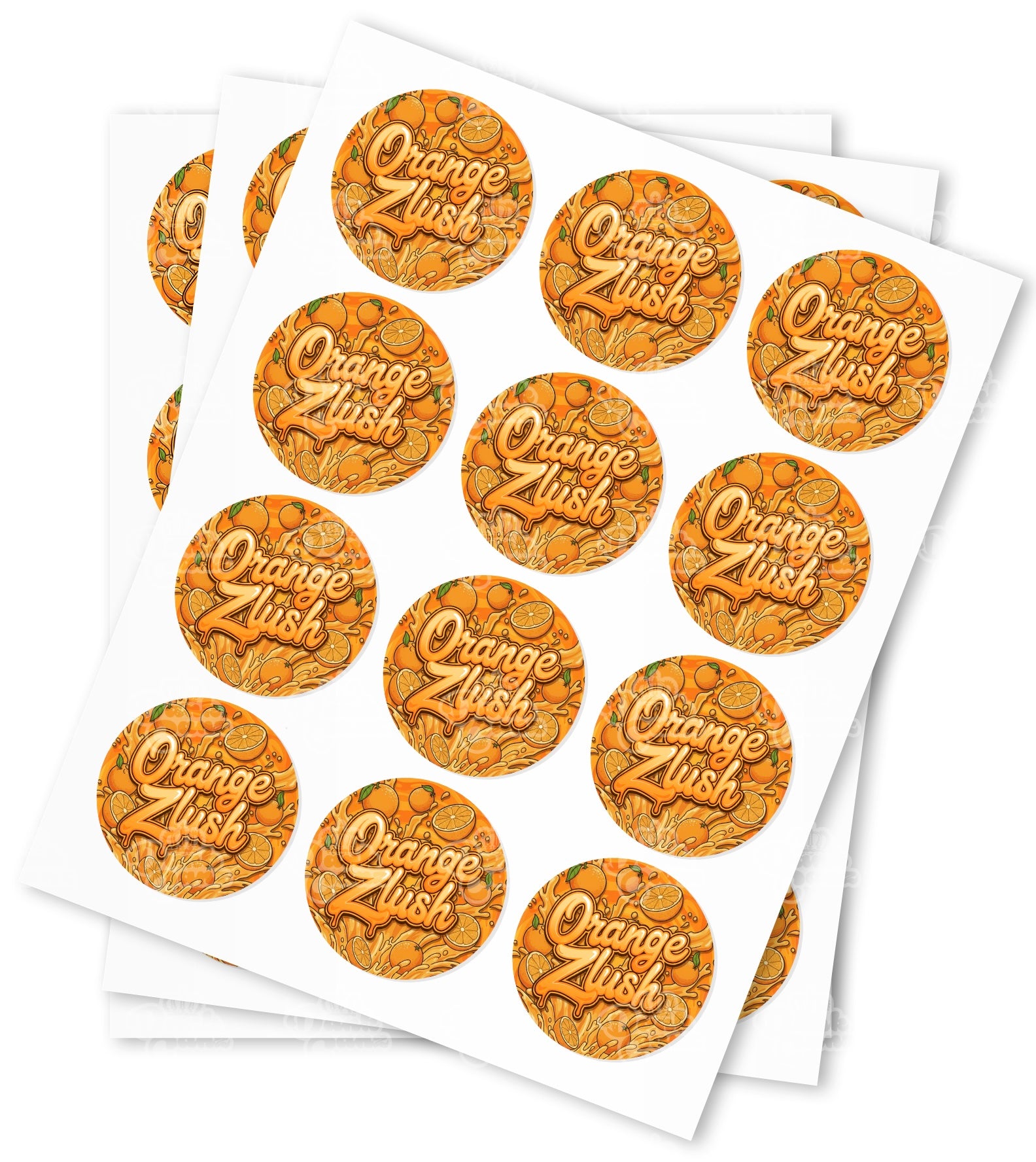 High quality water proof Orange Zlush gloss stickers supplied on sheets. Available in quantities of 50,100 & 1000.