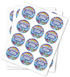 Our stickers are available in sizes 5cm, 7cm & 10cm and come on unlaminated sheets, printed using top quality gloss vinyl.