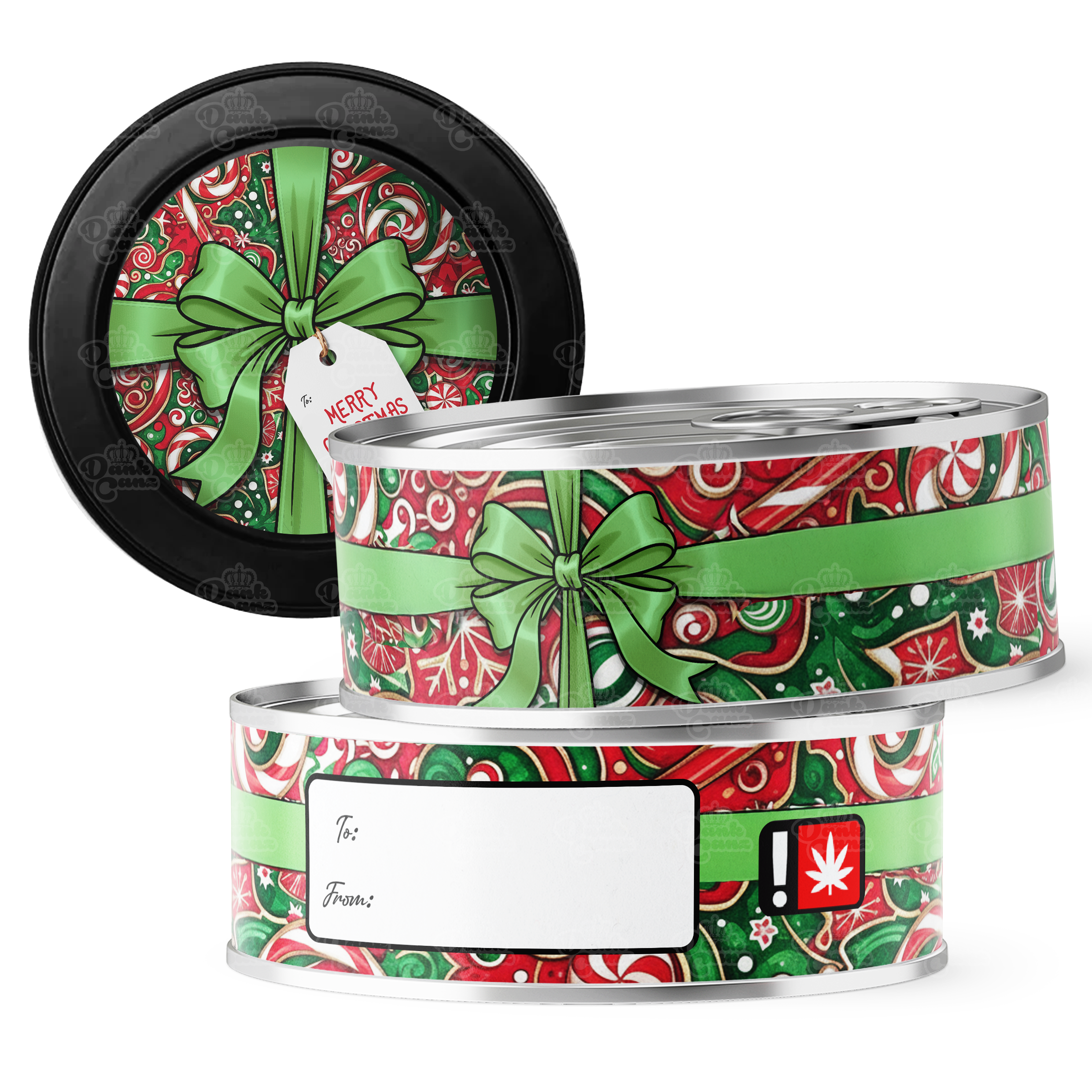 Need Christmas packaging quick? Pre designed seal at home tins are a perfect packaging solution and come pre-labelled (sticker applied to tin & cap). No machines necessary simply insert your dry products and pop the bottom on the pressitin. Once the bottom is fitted the only way into our tins is using the pull ring at the top. Complete with caps to keep your product fresh even after opening & with hundreds of designs to choose from & fast delivery our cali tins are one of our best sellers!